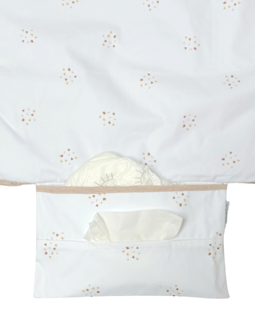 - Beschreibung: Diese Wickelauflage hat zwei praktische Taschen, in denen Sie Windeln und Tücher aufbewahren können. Die Liegefläche besteht aus Frottee und ist daher wunderbar weich.