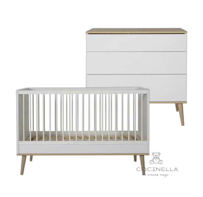 Quax Bed 70x140cm + Chest of drawers Quax Flow white - Showroom model