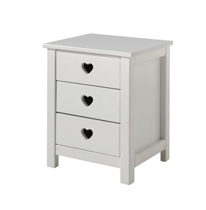 The white bedside table from the AMORI collection combines a timeless, fresh design with soft, romantic accents. It is the favourite room of anyone who loves elegant furniture. The bedside table has 3 spacious drawers for storing personal belongings. Let yourself be seduced by the charm of this room with heart detail.